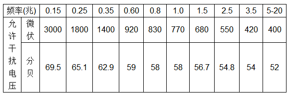 電容濾波器的端子剩余干擾電壓不高于下面 表中所列值