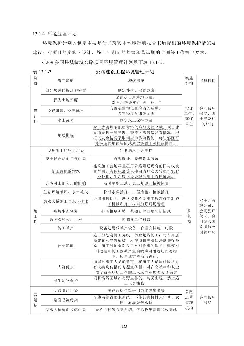 G209會(huì)同縣城繞城公路環(huán)境影響報(bào)告書