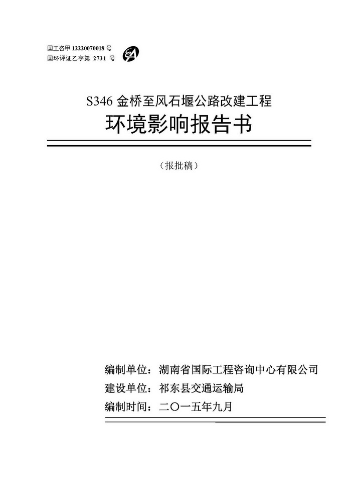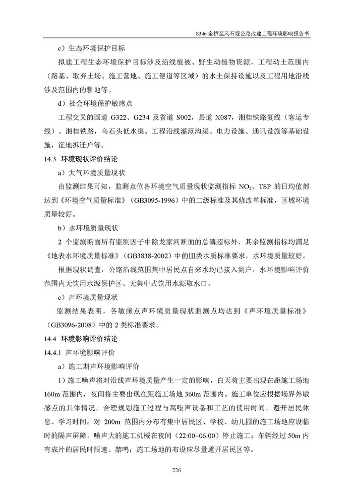S346金橋至風(fēng)石堰公路改建工程環(huán)評(報(bào)批)
