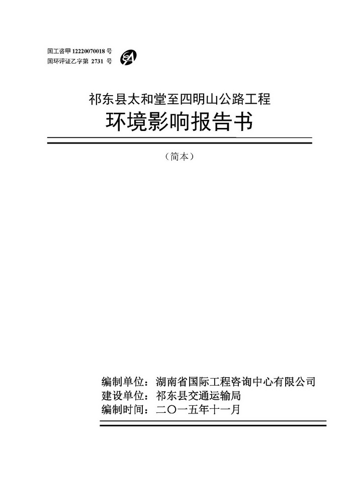 祁東縣太和堂至四明山公路工程環(huán)境影響報(bào)告書