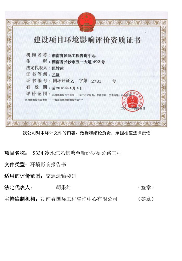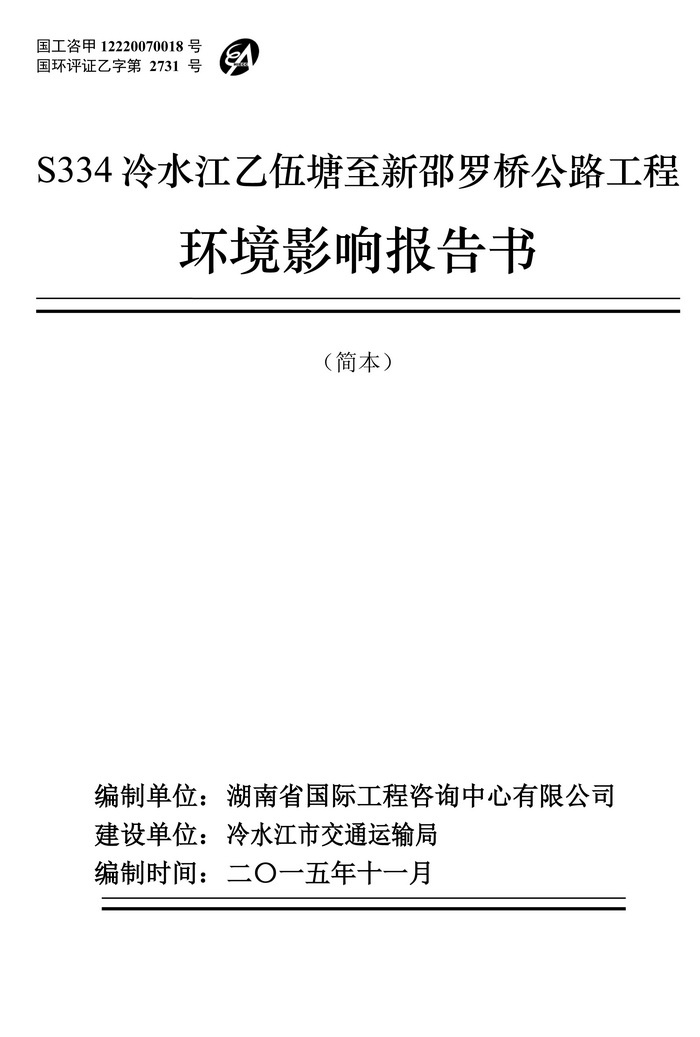 S334冷水江乙伍塘至新邵羅橋公路工程環(huán)評(píng)公示(簡(jiǎn)本)