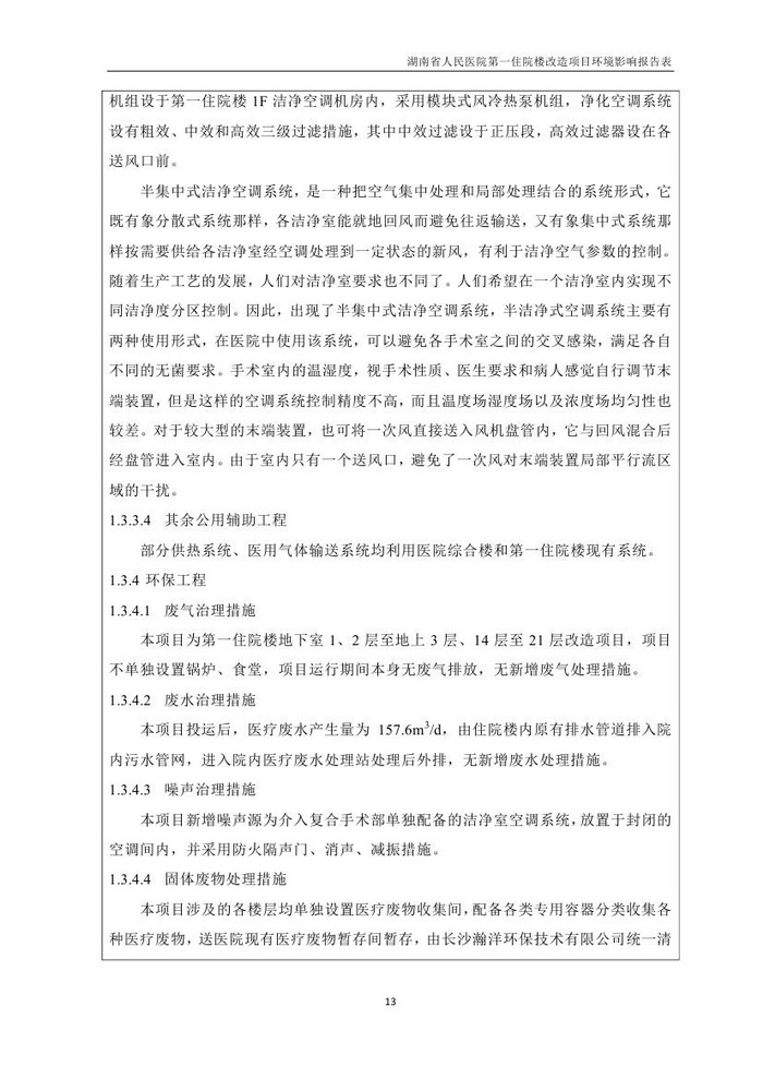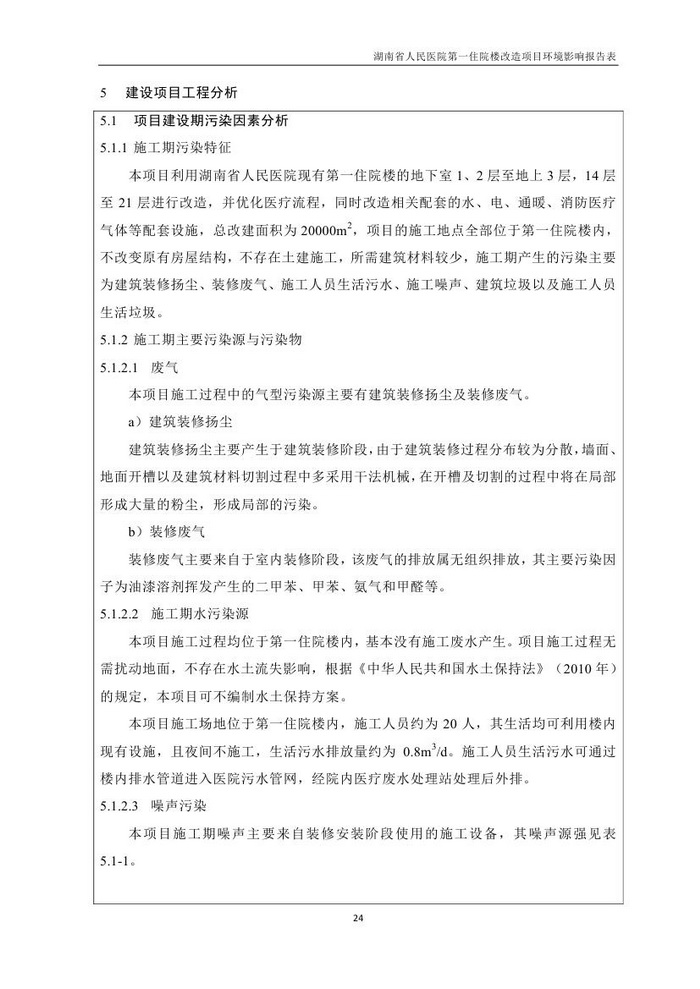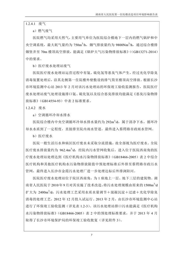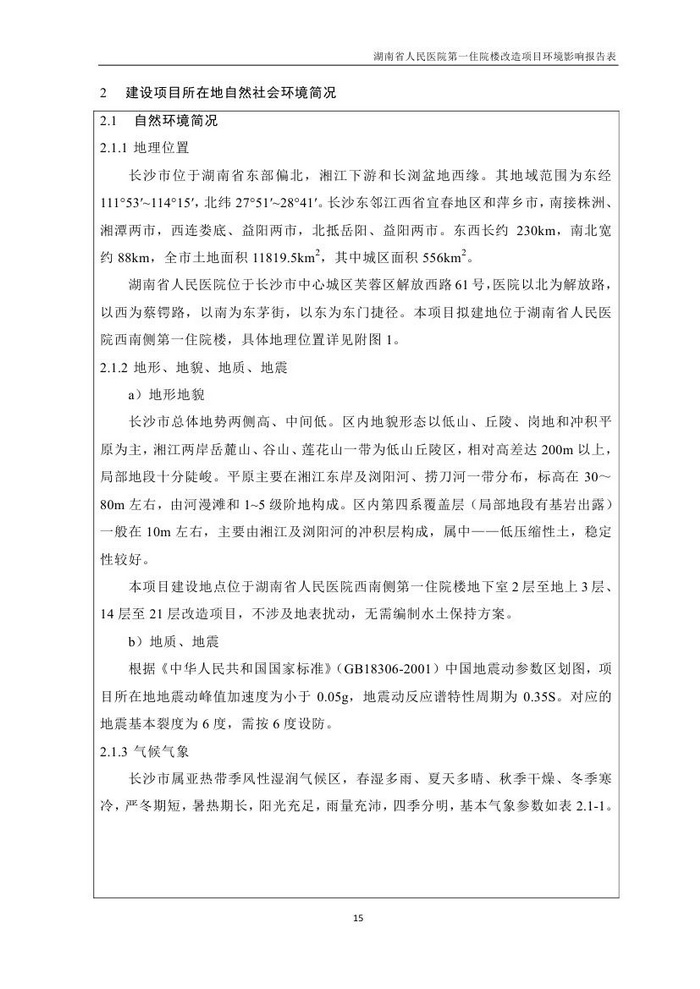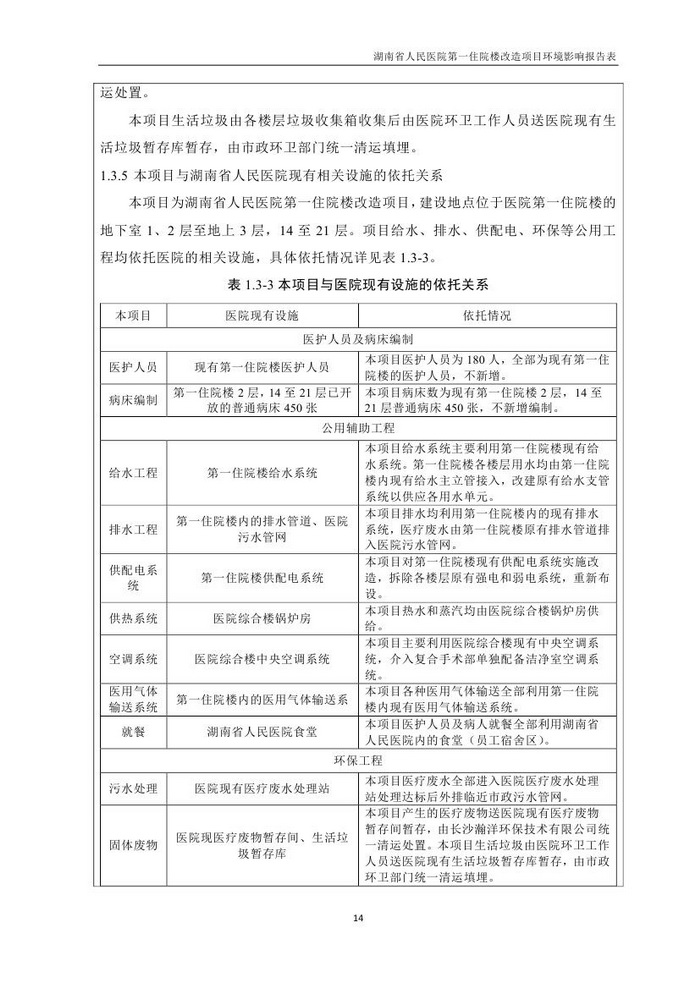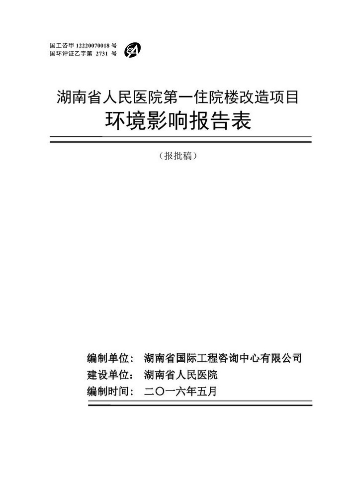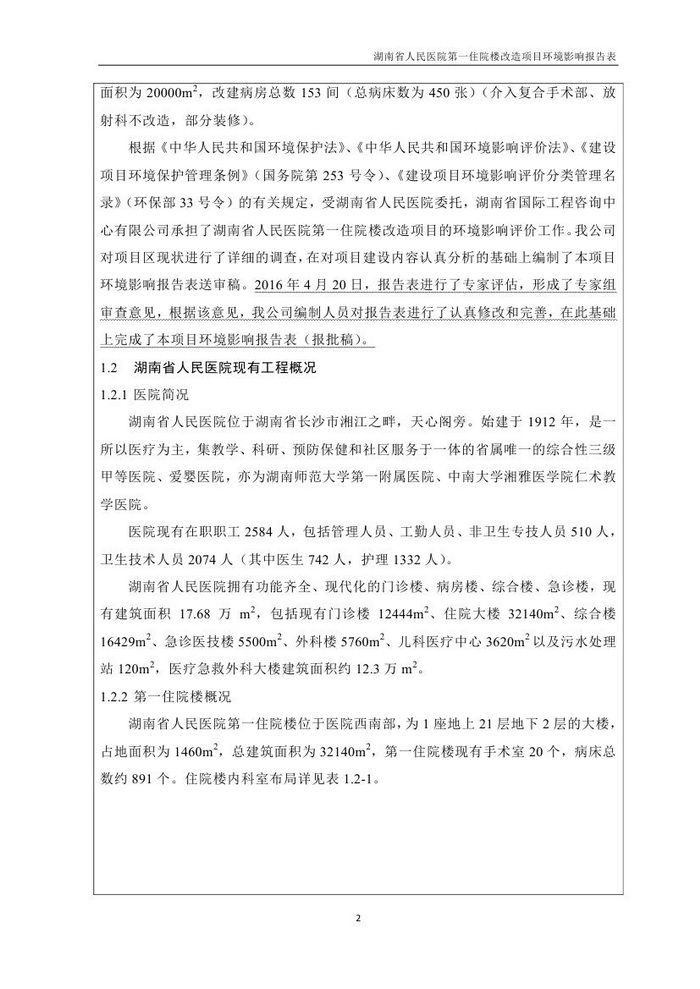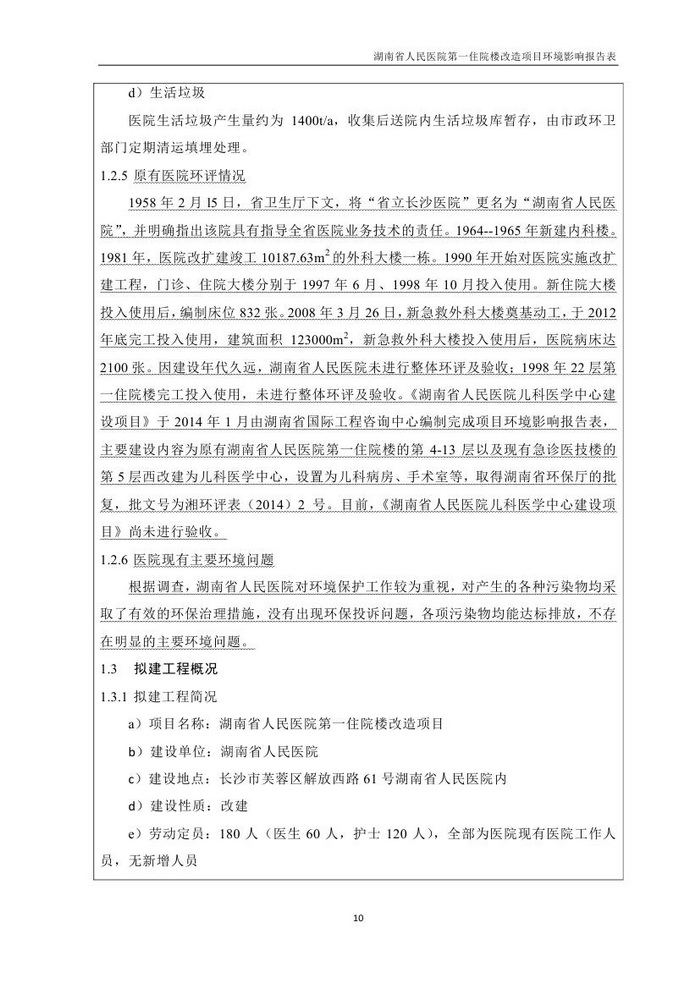 湖南省人民醫(yī)院第一住院樓改造項目環(huán)評報告表