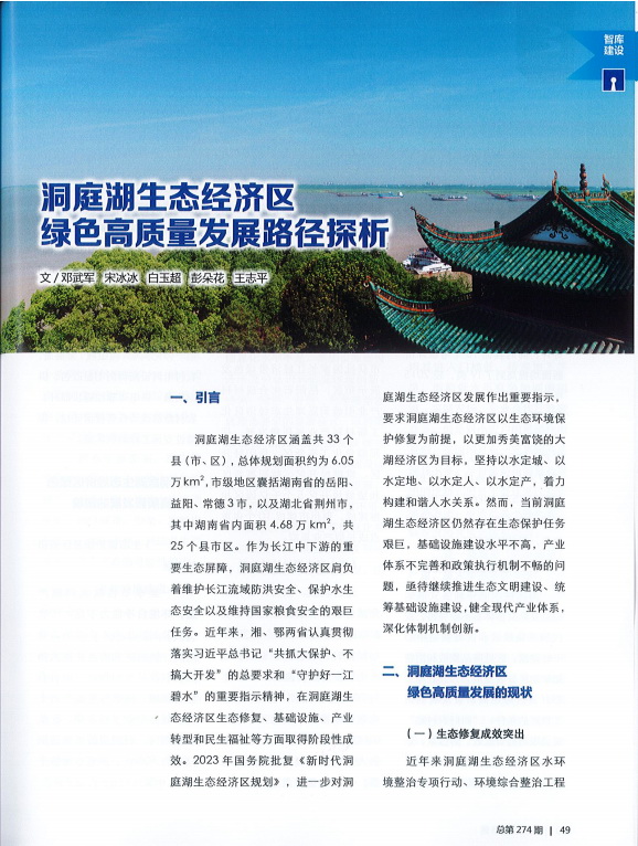 智庫思享 | 洞庭湖生態(tài)經(jīng)濟(jì)區(qū)綠色高質(zhì)量發(fā)展路徑探析